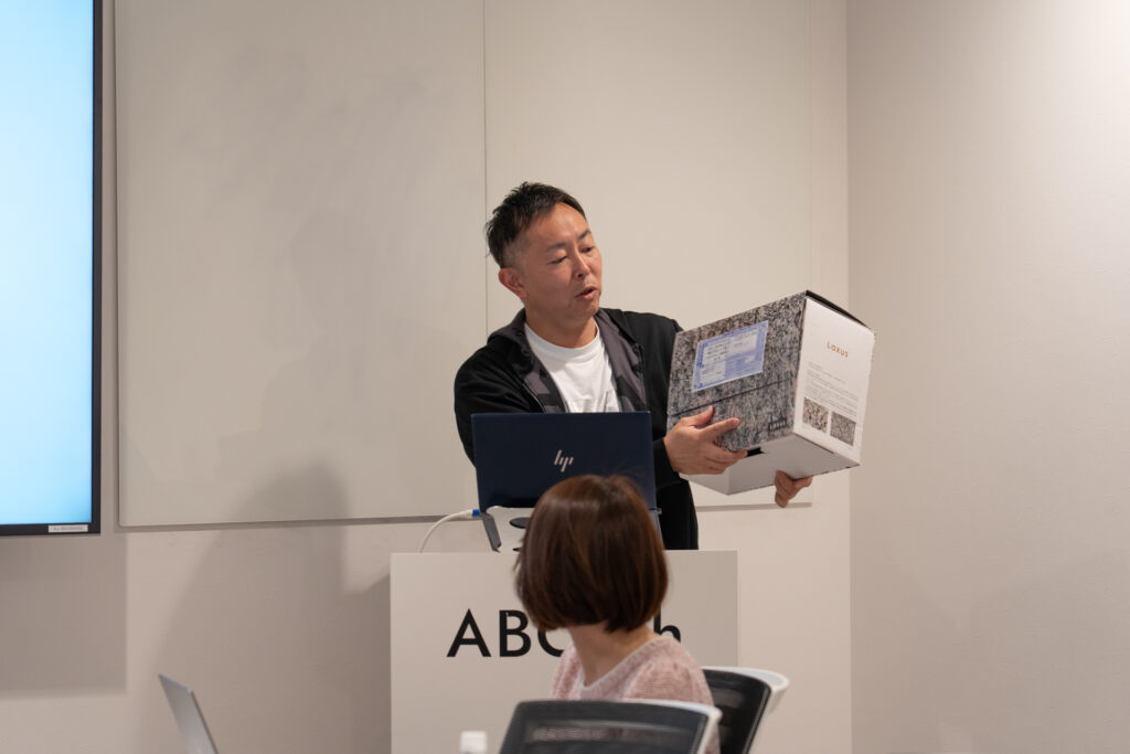 先にも触れましたが、ラクサスの「リユースボックス」。環境配慮とコスト削減の両面から配送箱を再利用する仕組みですが、ユーザー自身が「リユースボックスを使う/使わない」を選択できます。この“選ぶ”仕組みが、ユーザーをエシカルな取り組みに巻き込むきっかけになっています。ほかにも、リペア部門の丁寧な姿勢や、ユーザーからのお手紙に一通ずつ手書きで返信している話など、随所に企業文化としてのあたたかさが感じられました。